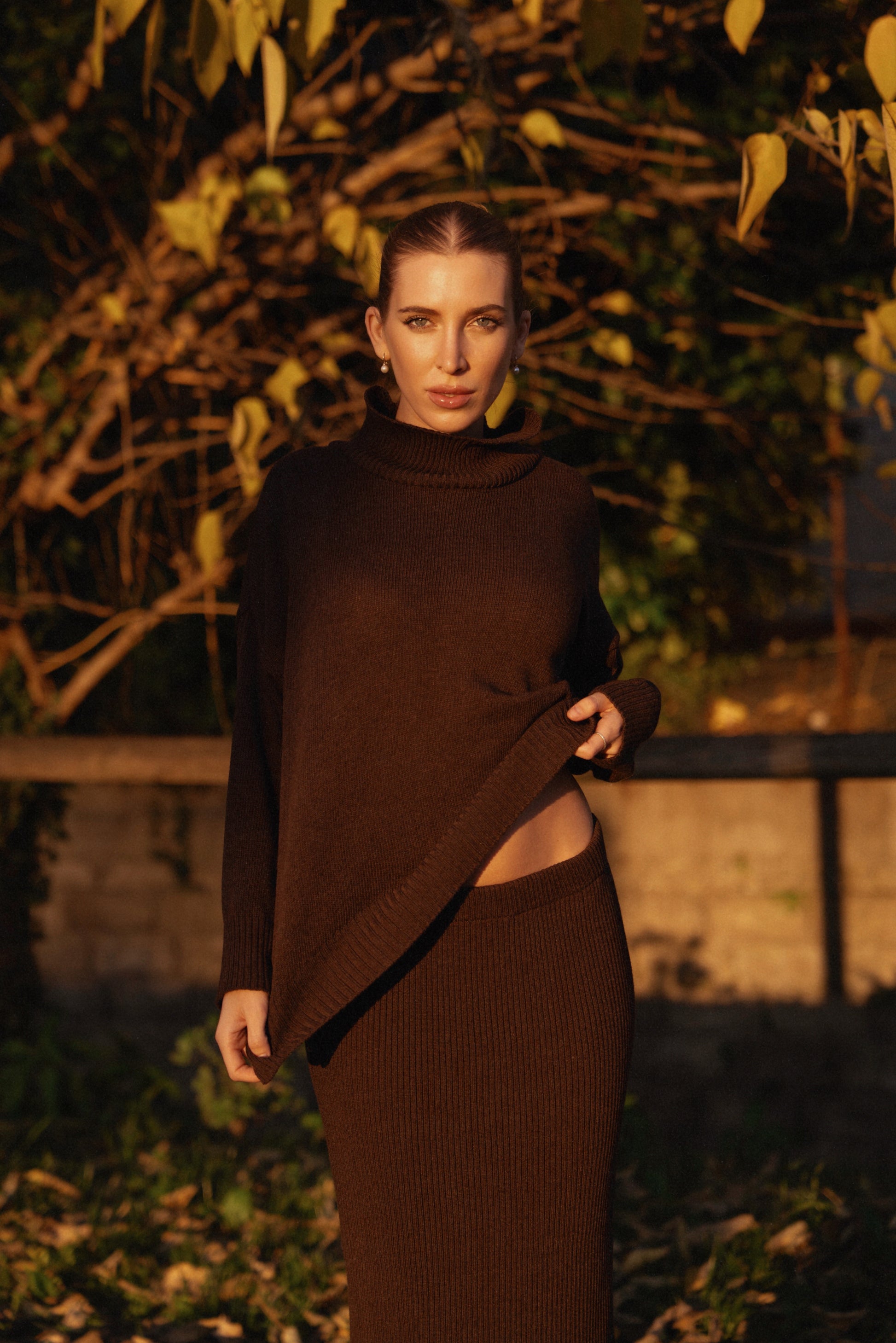 Maglione rasato con polsi,collo e fondi a coste.